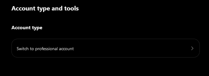 - Click Account type and tools, and Switch to Professional Account.