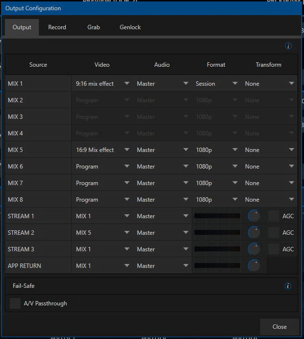 - In our example the 4K MIX1 output is being sent to Streaming Encoder 1, while MIX5 to Streaming Encoder 2