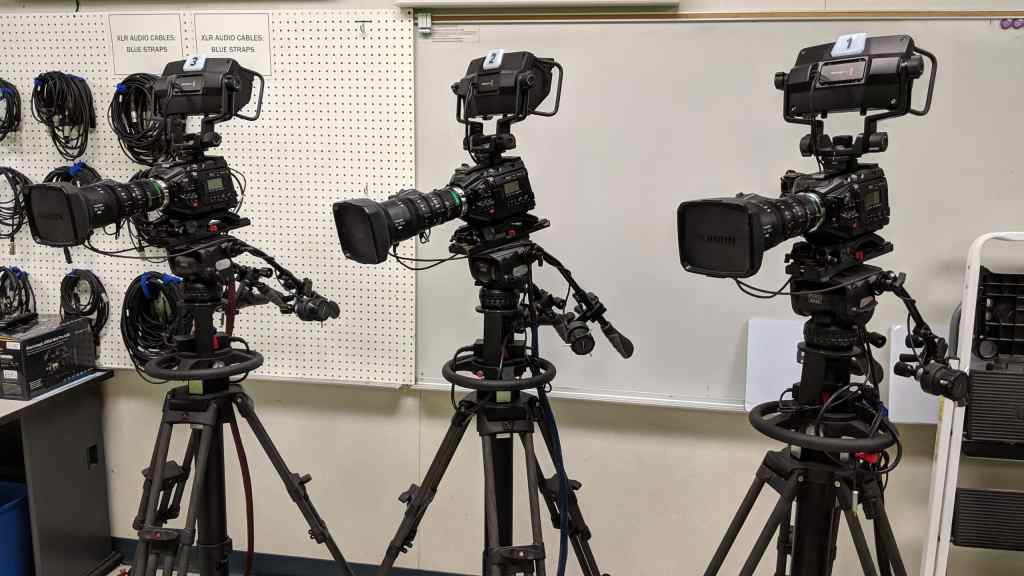Members also get to check out gear for shooting in the field, including three Sony NX70 1080p HD cameras with 2-input XLR adapters with Manfrotto 501HDV tripods. They also get access to other equipment options, such as Shure SM58 handheld mics, Shure WL185 lapel wired mics or Sennheiser wireless lapel camera system microphones; headphones, a Lowel 3-point lighting kit; and XLR, BNC, ¼ inch, RCA, HDMI, 3.5MM, displayport, and other AV cables and adapters.