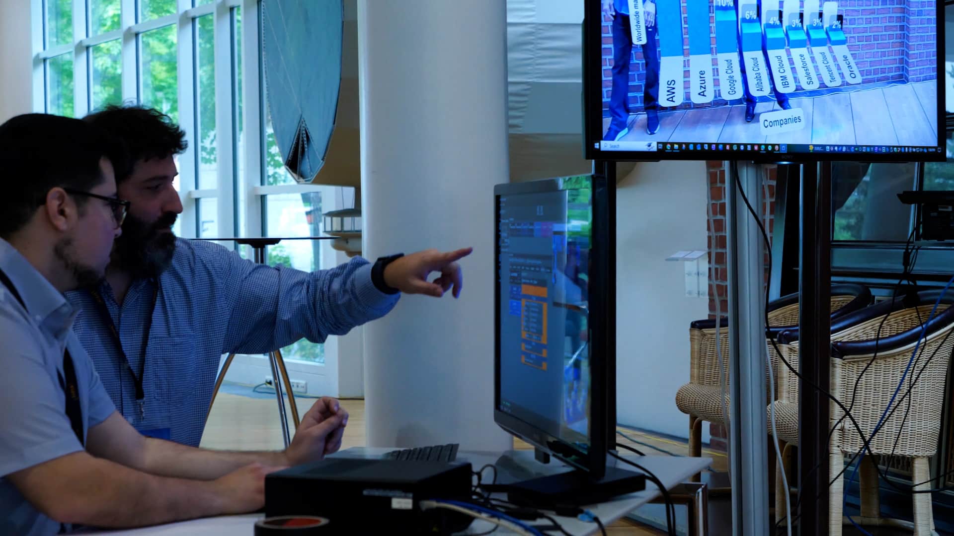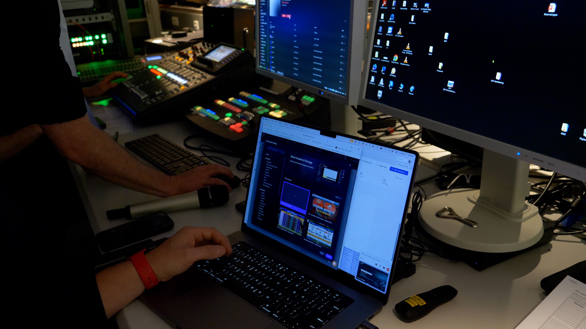 Vizrt successfully integrated its technologies with the venue’s existing infrastructure to elevate the production value. A detailed wiring diagram was created to plan signal flows and ensure flawless integration of all technology components. This was essential for managing the complex setup, which included projectors, downstage and upstage monitors, digital signages, PowerPoint presentations, audio mixing, and a virtual studio.