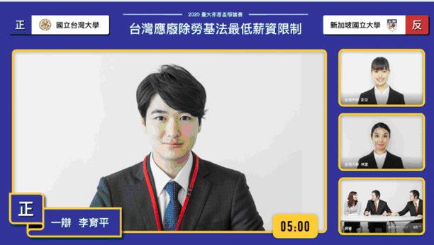 Yi-En Oregon Debate Competition of National Taiwan University (NTU) is one of the most prominent Oregon debate championships of the Chinese language competitive debate community. In 2020, the COVID-19 outbreak rendered the usual competition format unworkable, the organizer had to adapt innovative technologies to make sure the most prominent debate championship lives on.